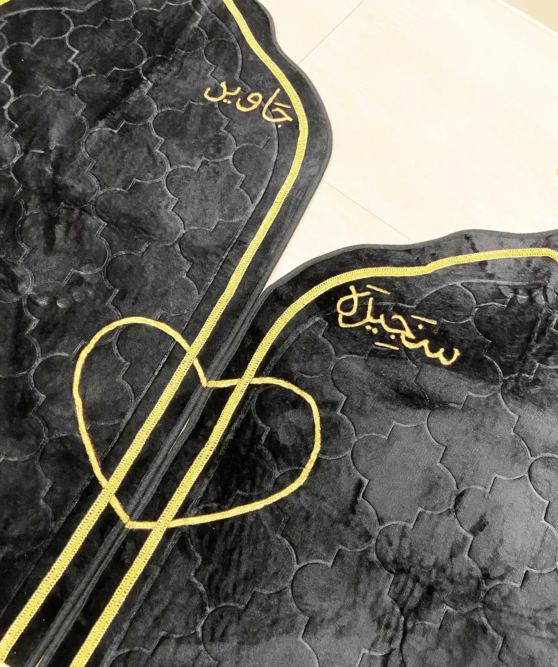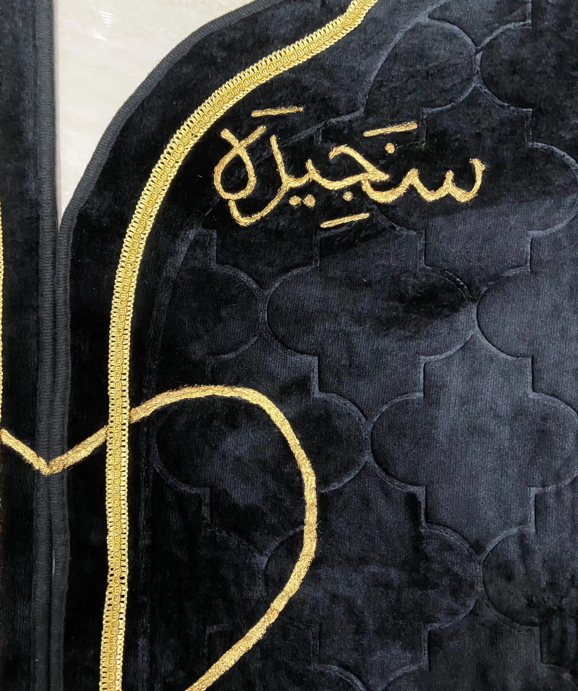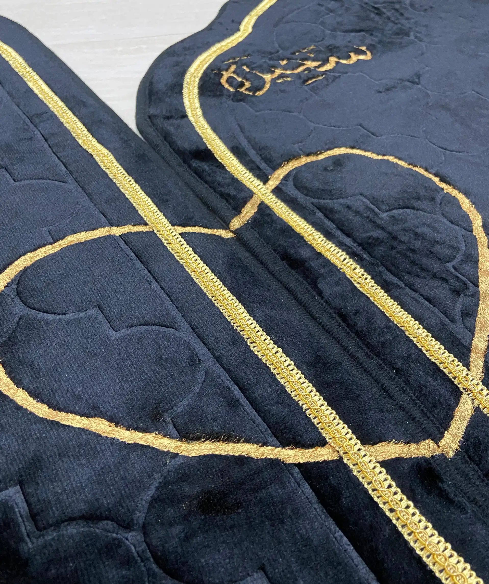 What makes this prayer mat truly special is the elegant customization. We’ll beautifully embroider your names onto the mat, transforming it into a unique testament to your bond and shared spiritual journey. Imagine the beauty of praying side-by-side, each glance at your personalized mat deepening your connection.