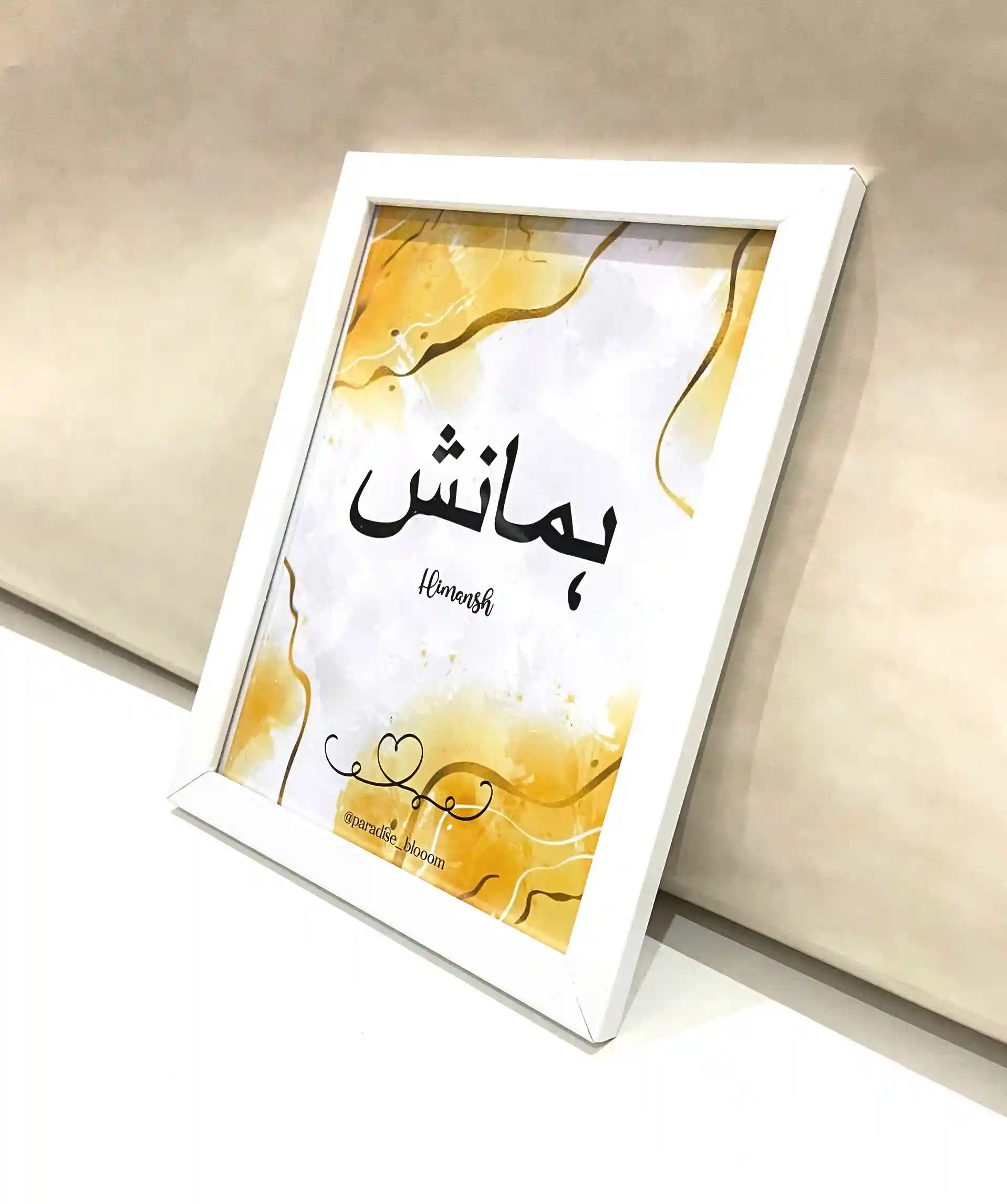 Celebrate identity, faith, and elegance with our Personalized Arabic Name Frame – a beautifully crafted piece of Islamic wall decor that adds a spiritual and aesthetic touch to any space. Each frame features your chosen name, carefully written in authentic Arabic calligraphy, creating a meaningful keepsake or gift that blends tradition with timeless design.