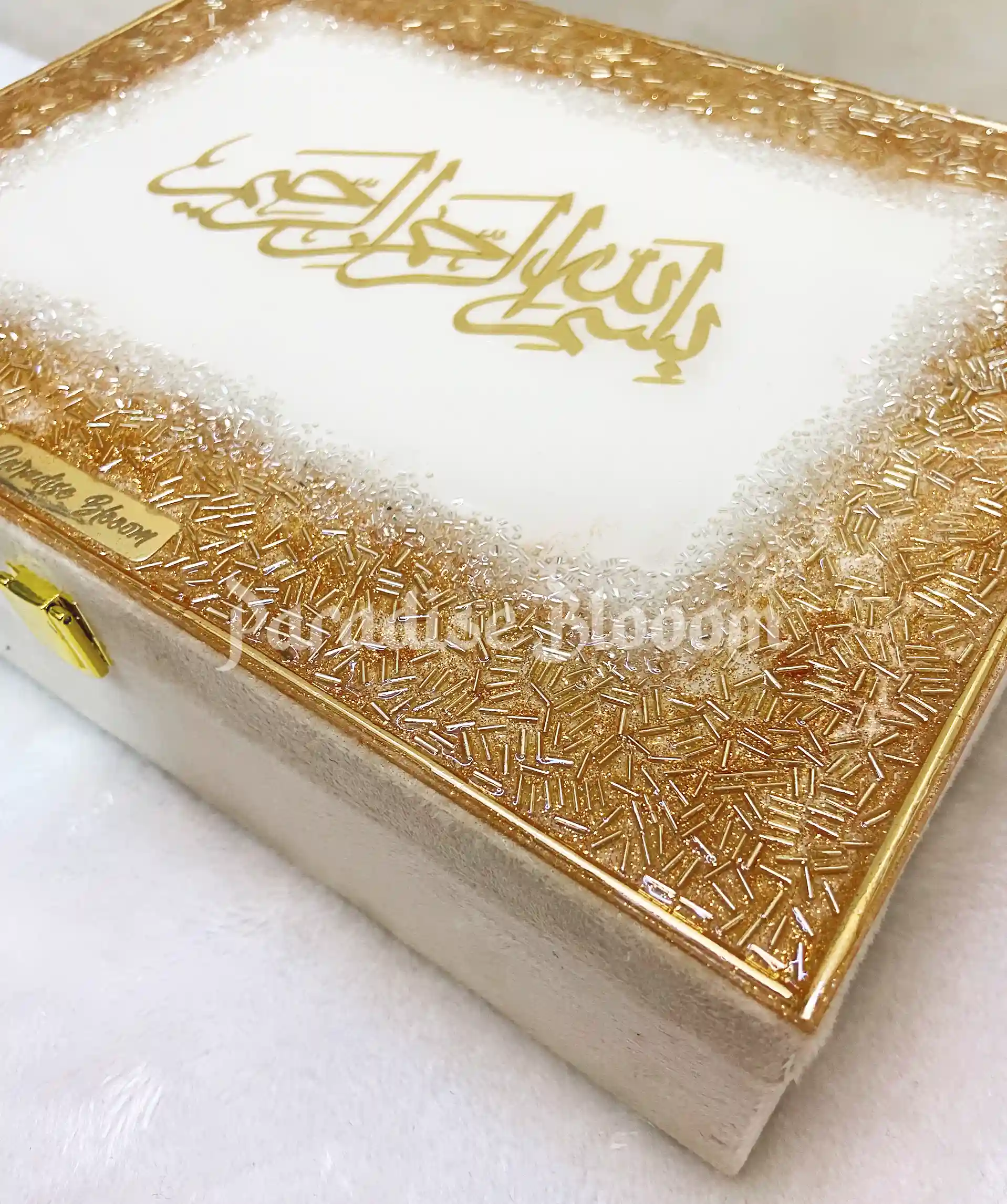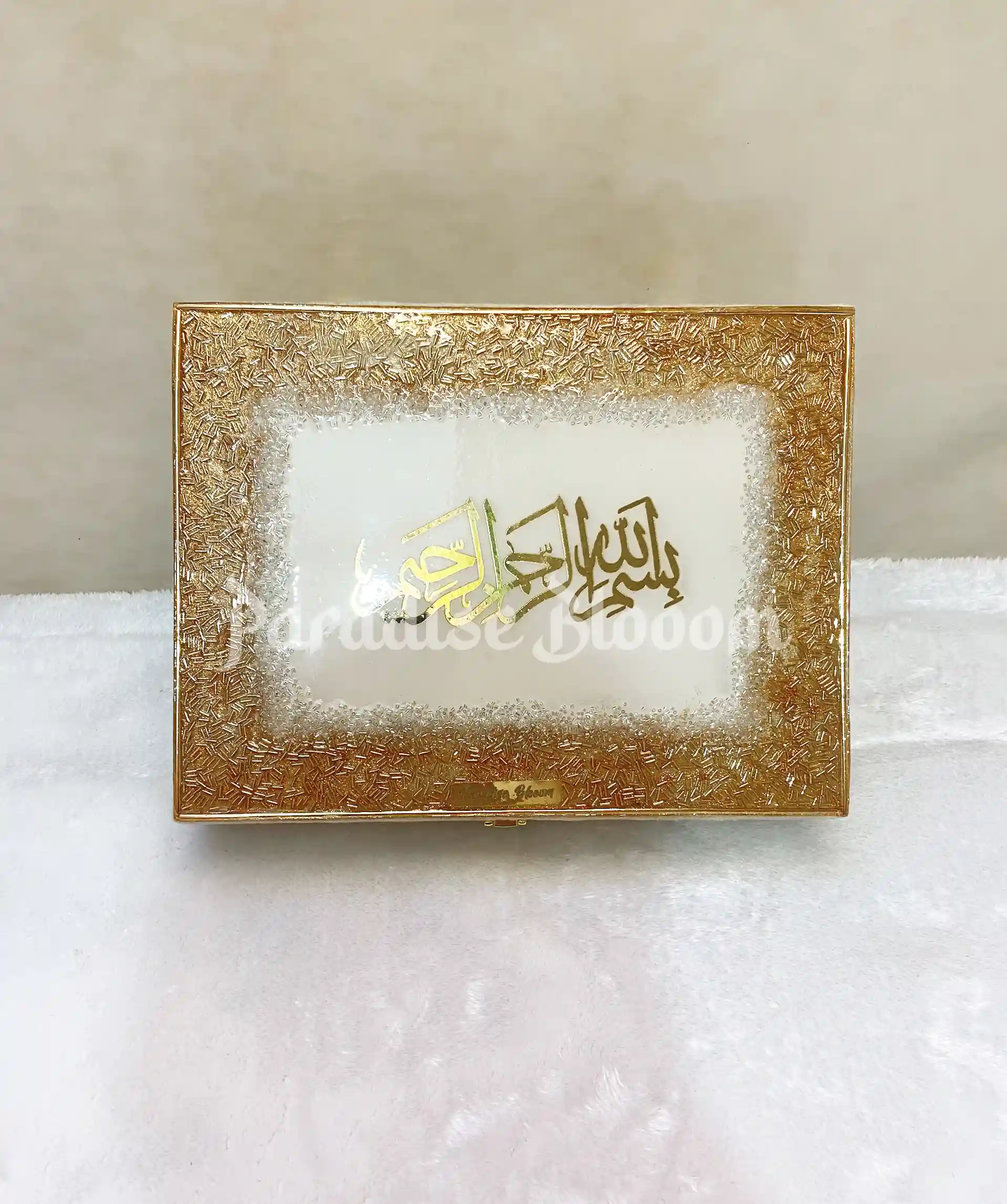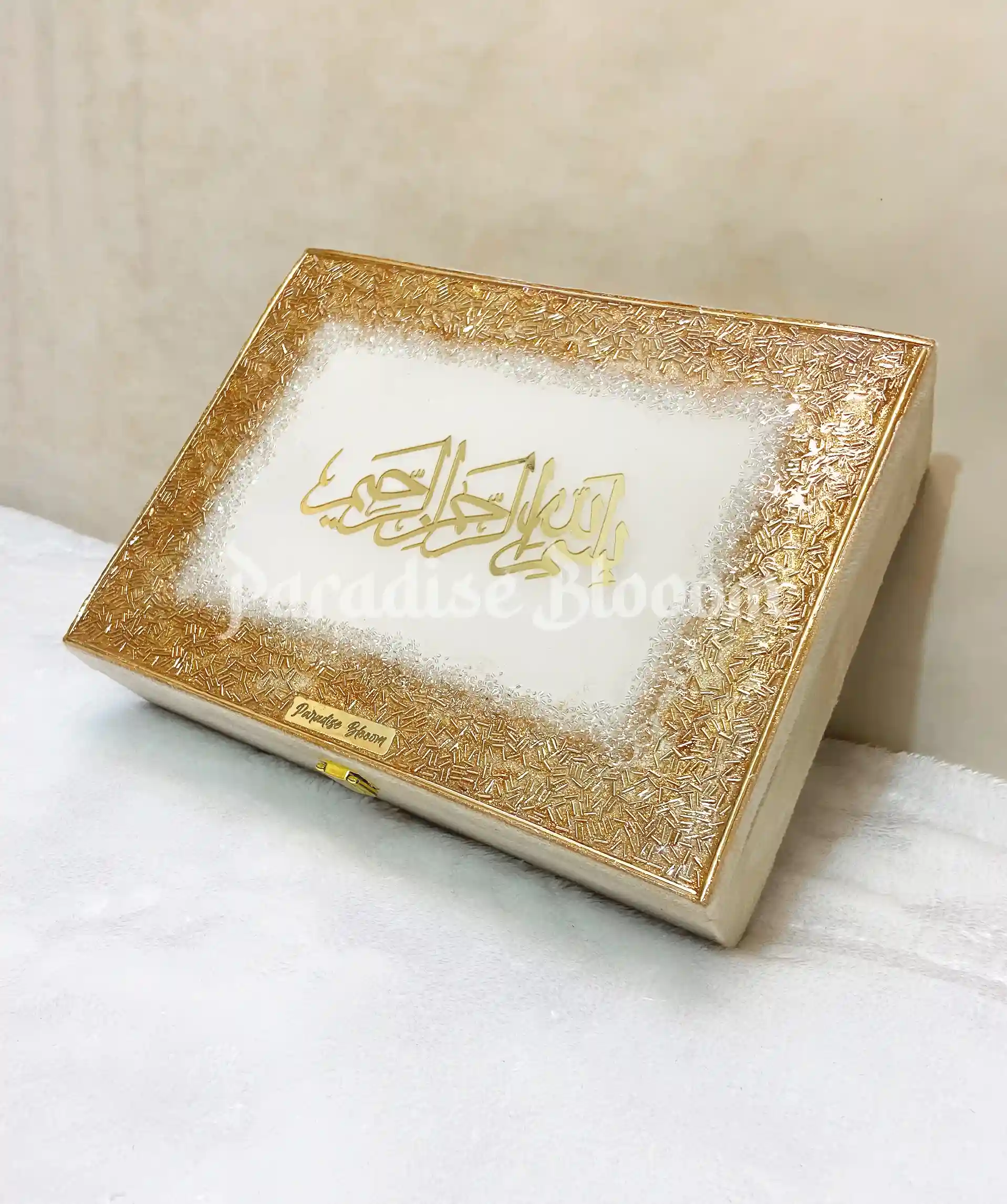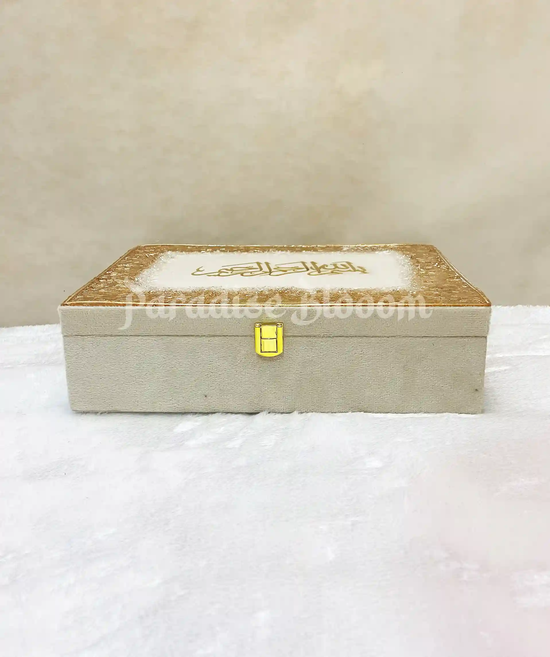 🎁 Designer Quran Box – Luxurious leather/velvet finish with handcrafted Bismillah in resin art