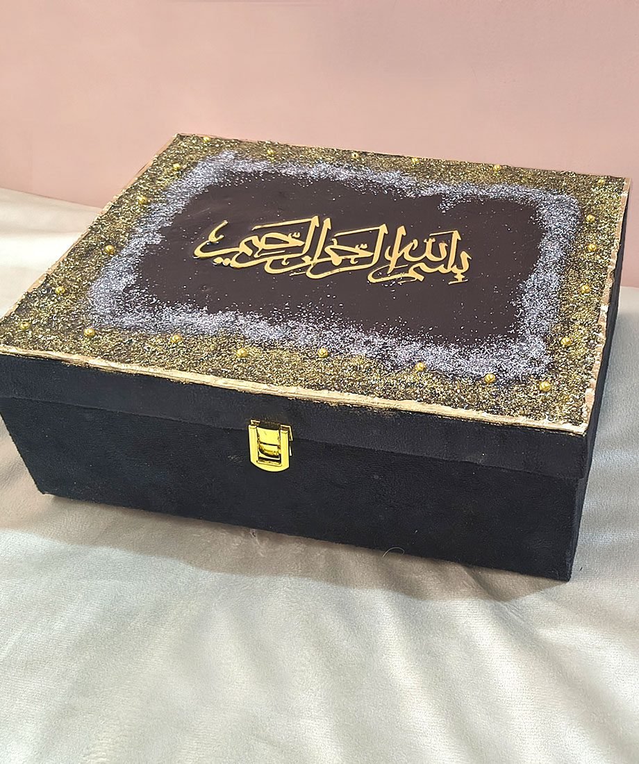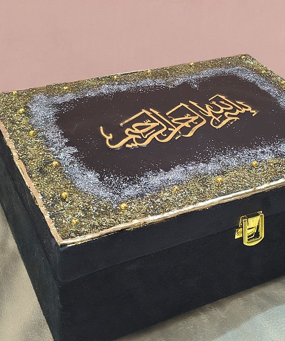 Premium Designer Quran Box With Bismillah in Resin Art – Black