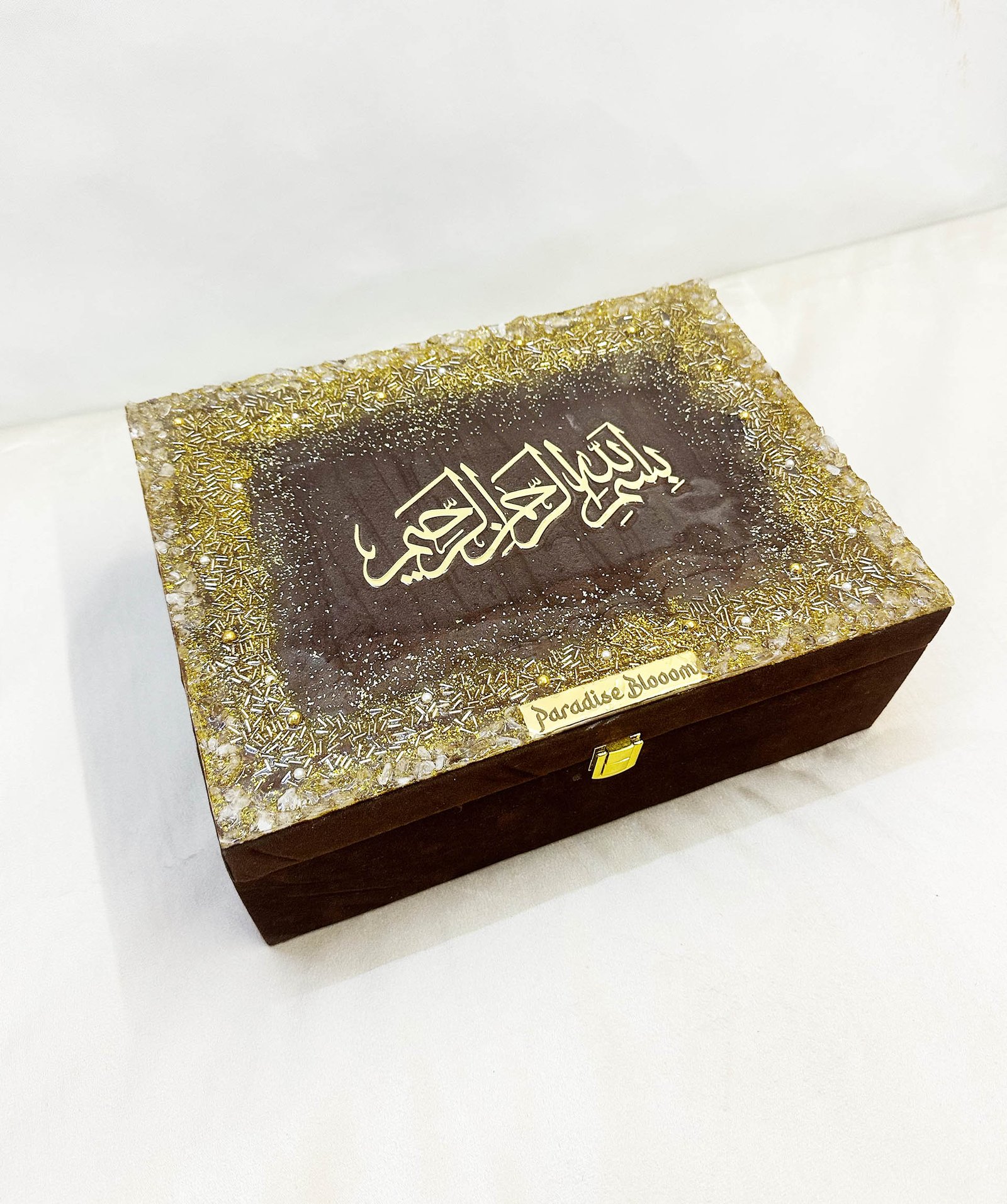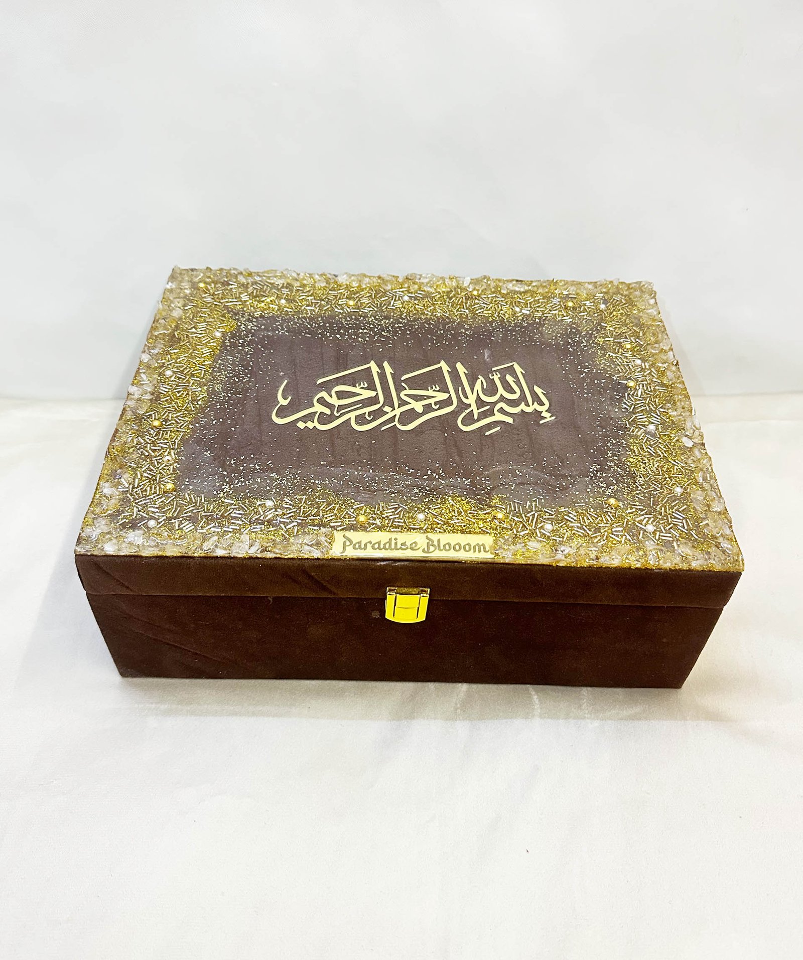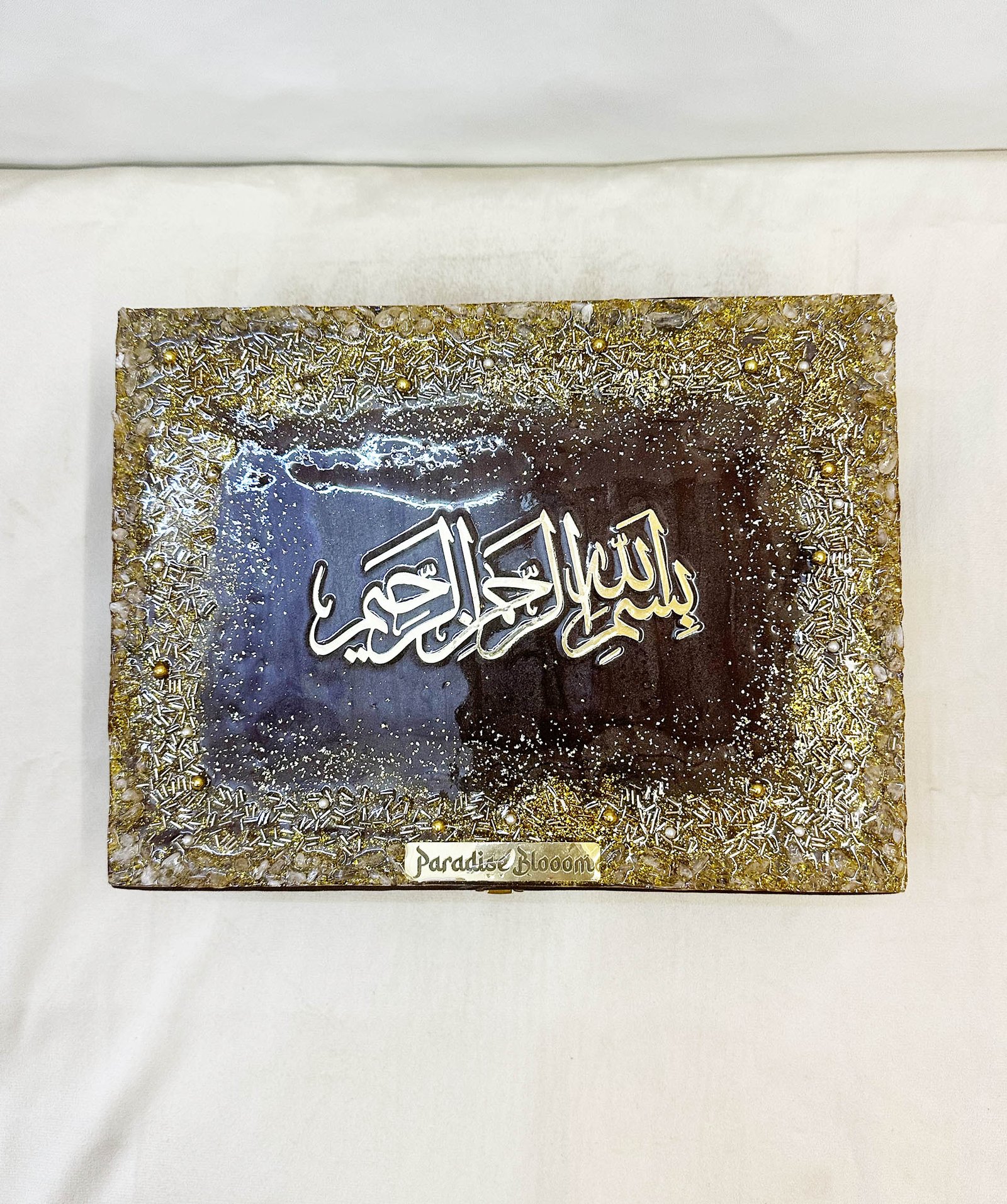 Premium Designer Quran Box With Bismillah in Resin Art – Brown