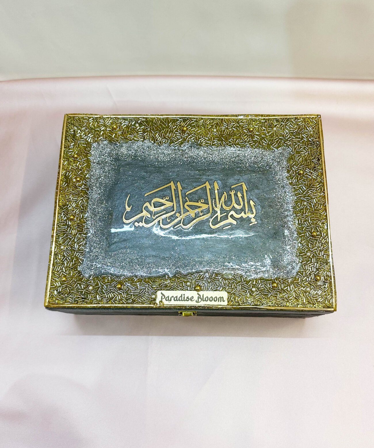 Be the first to review “Premium Designer Quran Box With Bismillah in Resin Art – Grey”