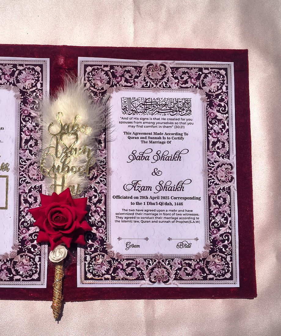 Whether you’re preserving your Nikah ceremony, gifting it to a loved one, or placing it in your memory box, this booklet is more than a document — it’s a symbol of love, commitment, and dua.